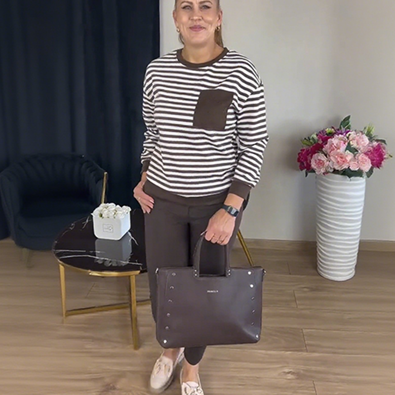 Stripade topp och enfärgade byxor för damer