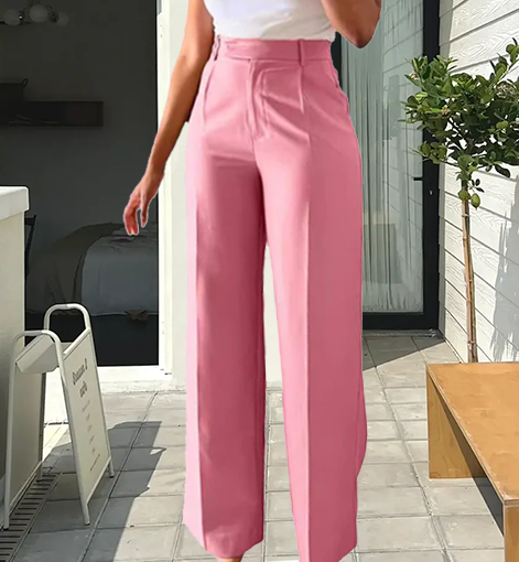 HÖG MIDJA: Dessa byxor har hög midja som förlänger benen och ger en smickrande, stilfull look, vilket gör dem perfekta för alla kroppstyper och olika tillfällen.